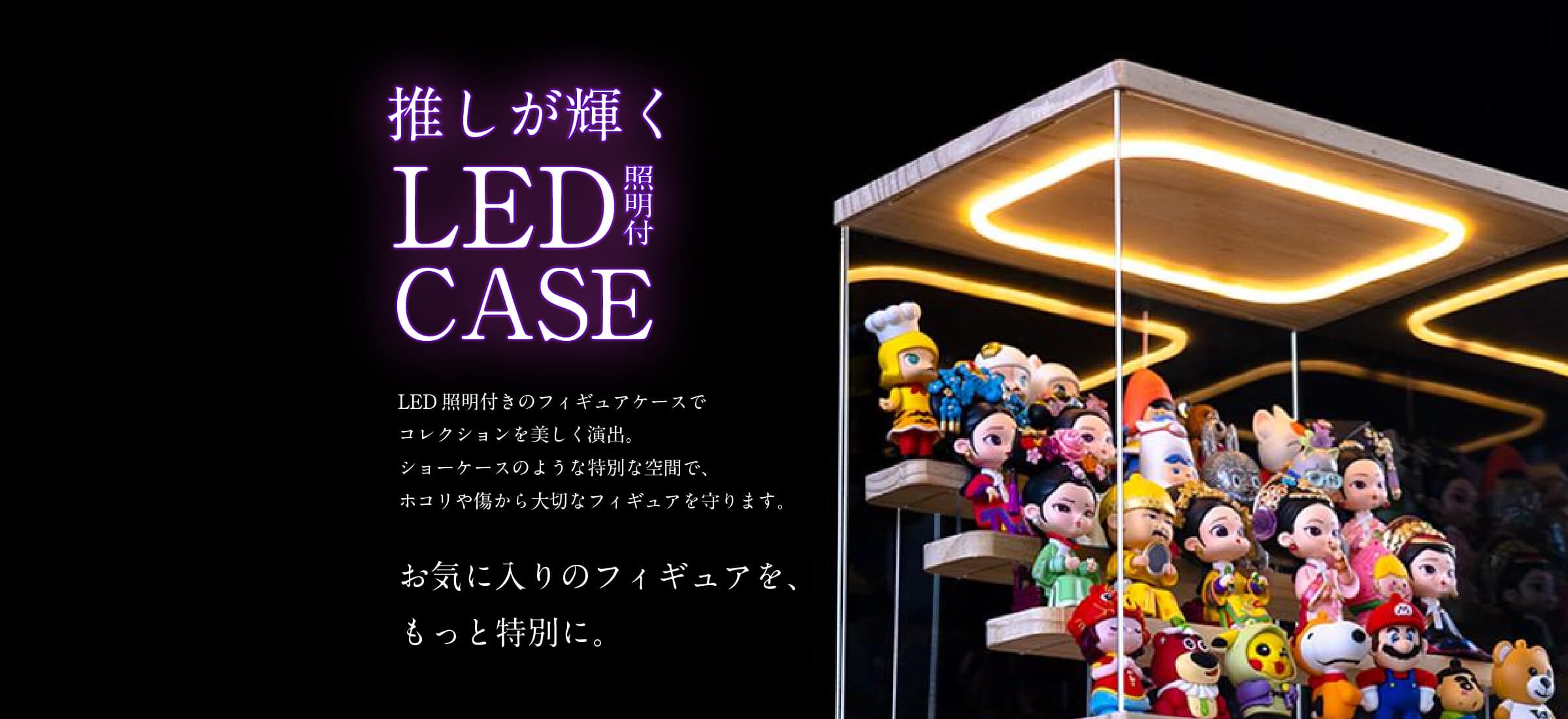 スポットライト+ターンテーブル付きのケースで推しのフィギュアを飾ろう!