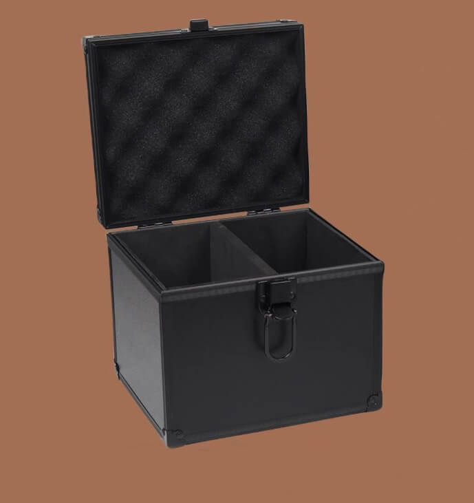 A chic black card box with vibration and heat resistance. It can also store cards in loaders and PSA cases.