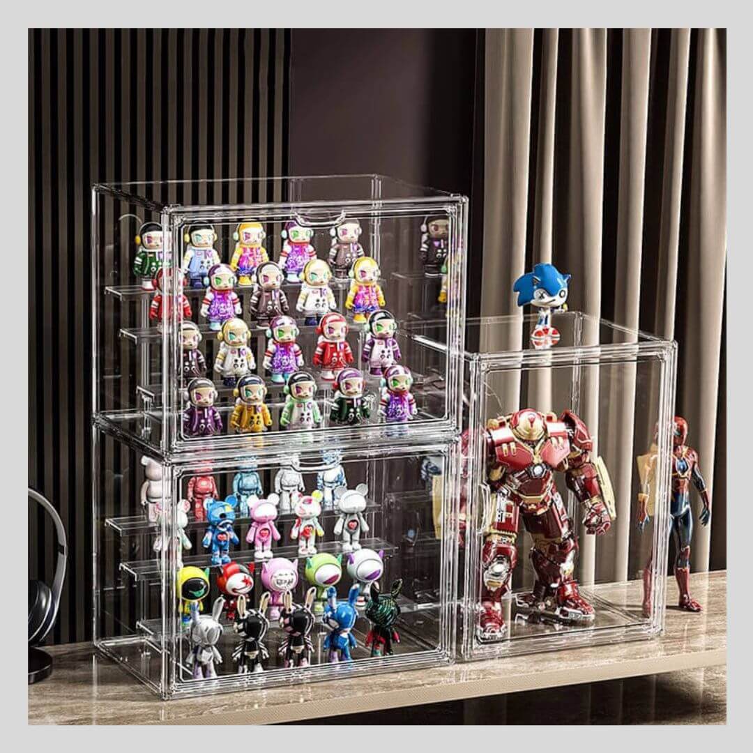Une boîte en acrylique transparente avec une étagère qui protège votre précieuse collection de la poussière et des dommages.