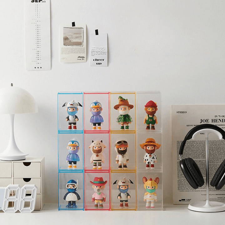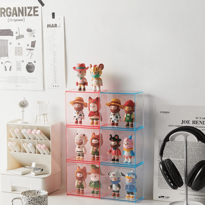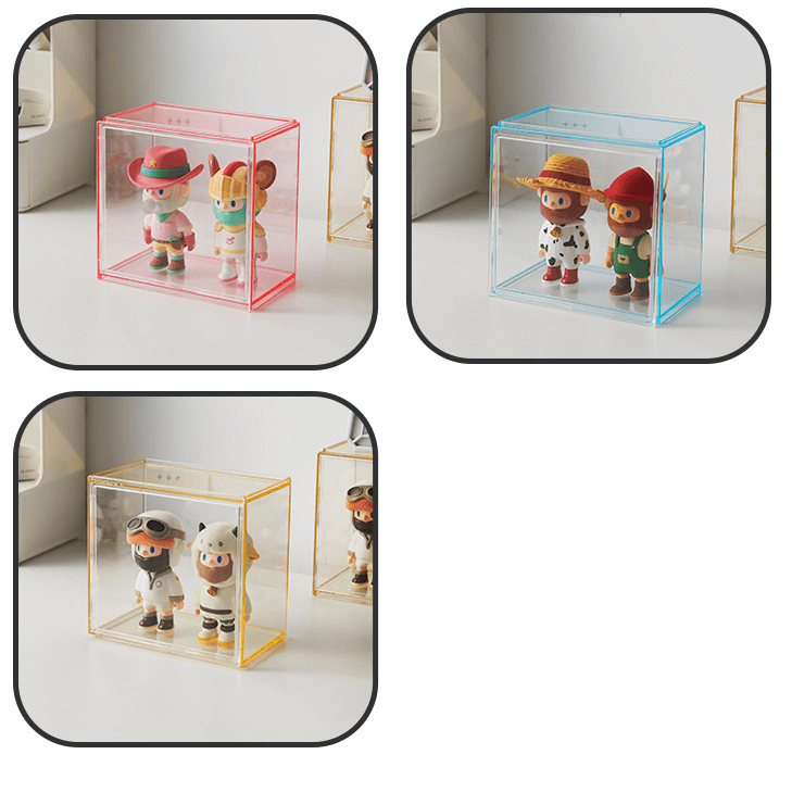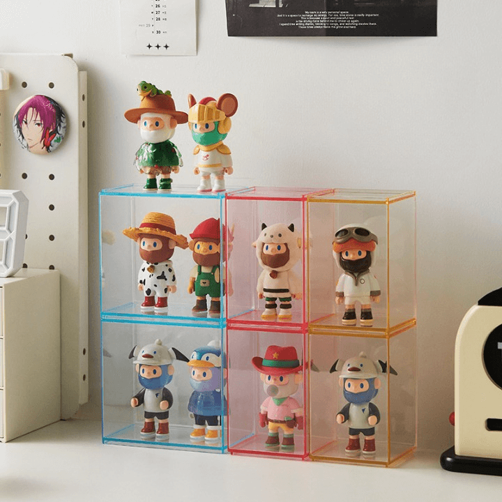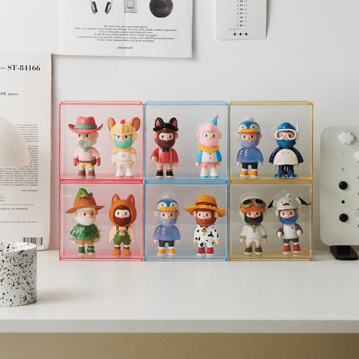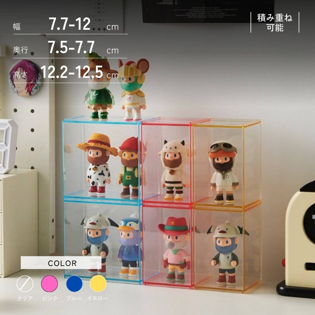 ナノブロックやSD(スーパーデフォルメ)フィギュアなどを収納できる透明感のあるクリアディスプレイボックス。クリア、ピンク、ブルー、イエローの4色でバリエーションが豊富。