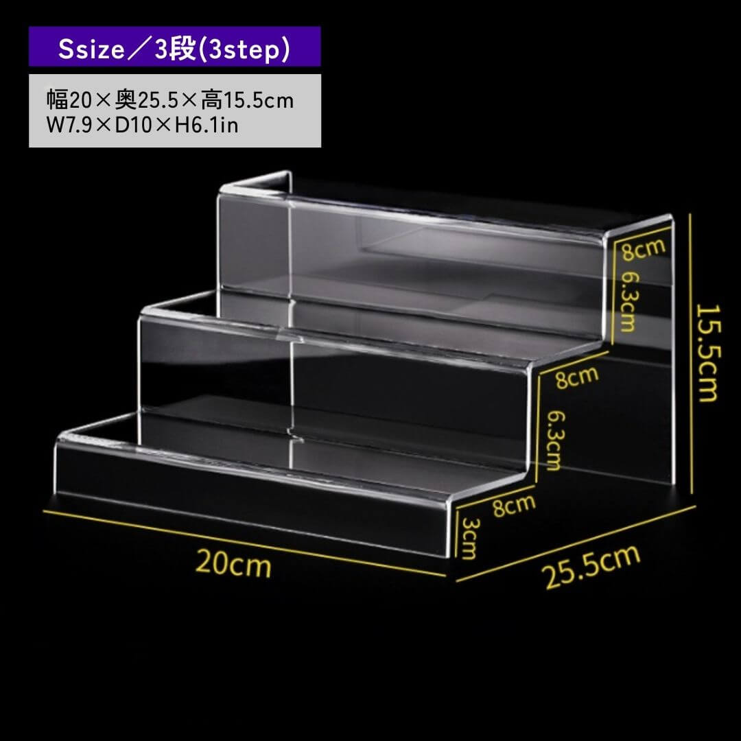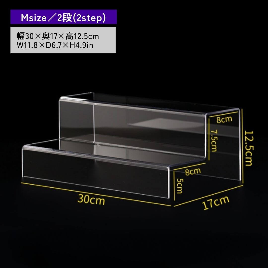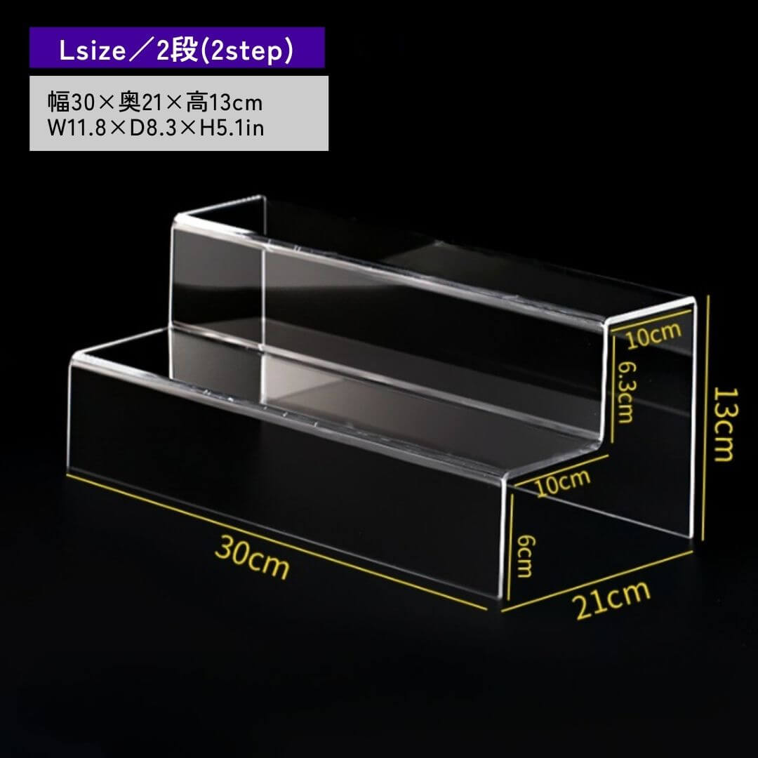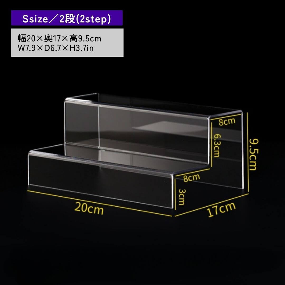 段差設計により後方のアイテムも隠れずにしっかり見える構造で、省スペースながらたっぷり陳列可能。アニメグッズやミニフィギュア、ガチャガチャのディスプレイにも最適です。