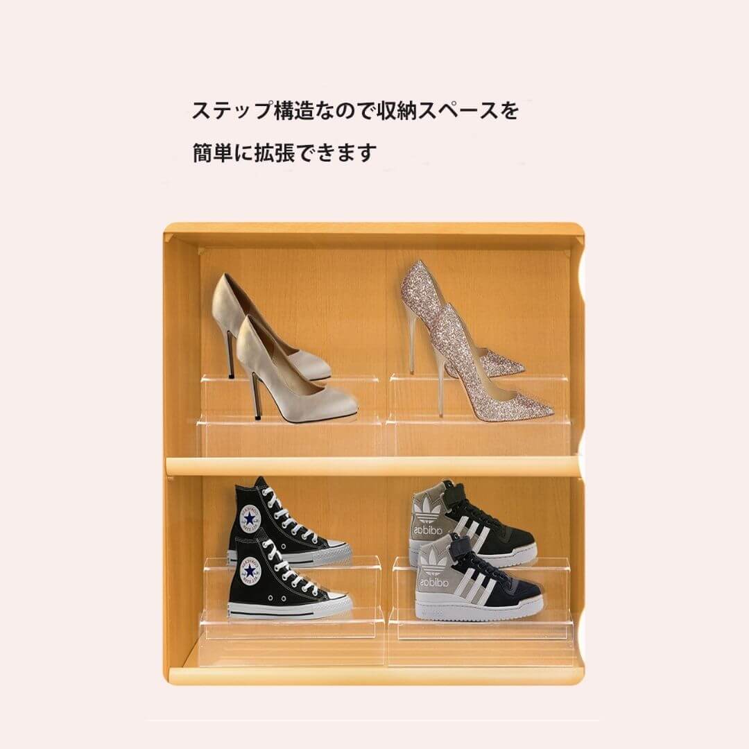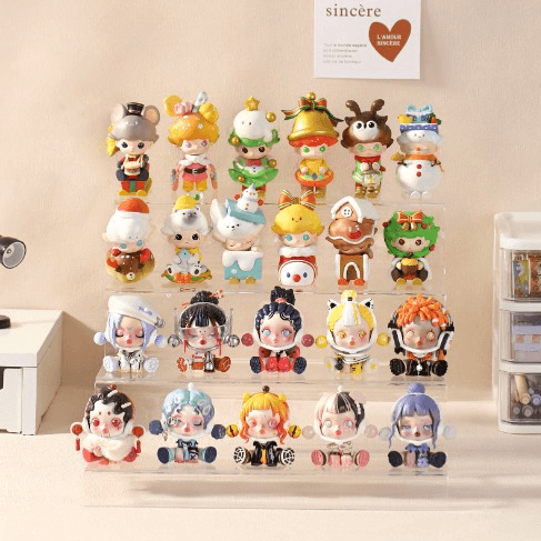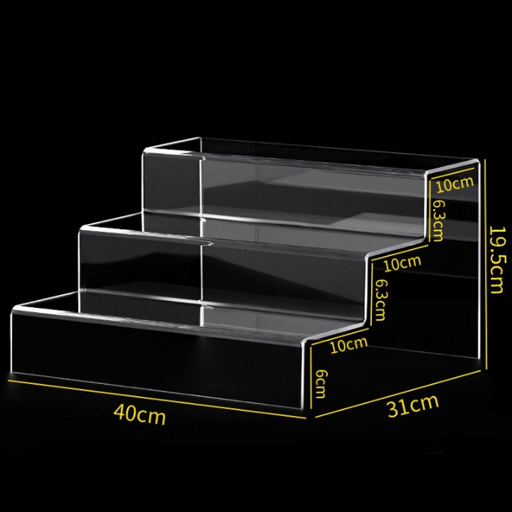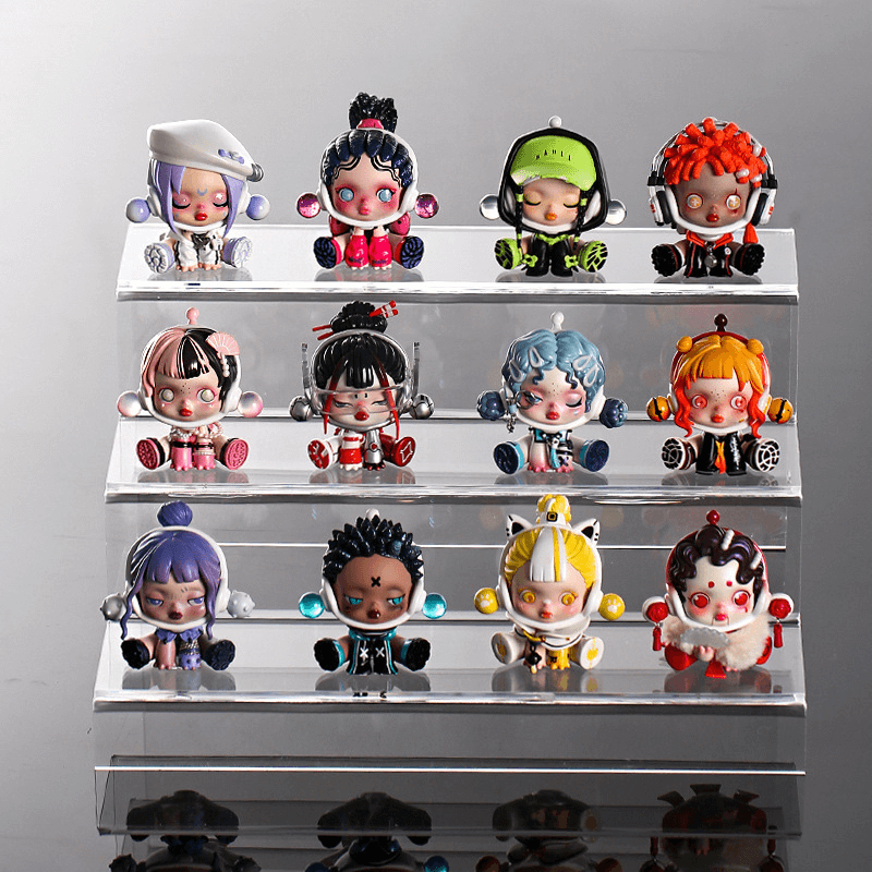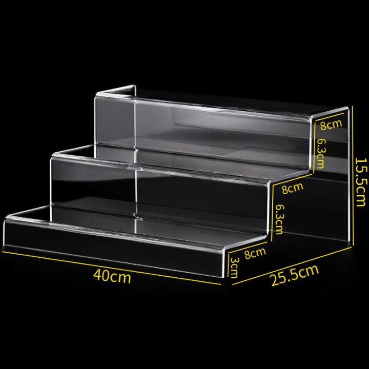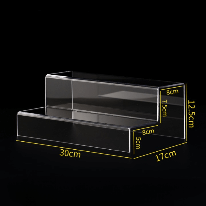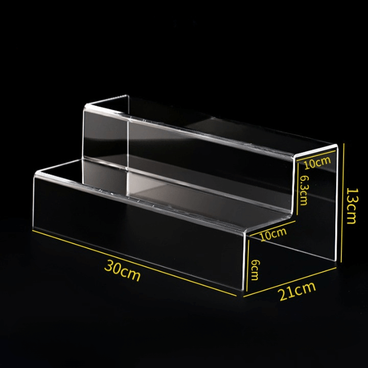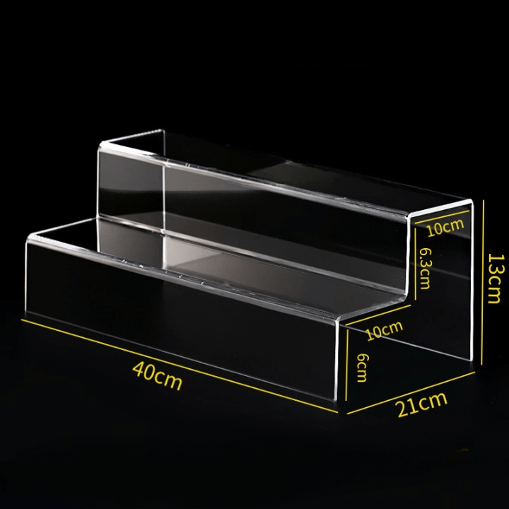 段差設計により後方のアイテムも隠れずにしっかり見える構造で、省スペースながらたっぷり陳列可能。アニメグッズやミニフィギュア、ガチャガチャのディスプレイにも最適です。
