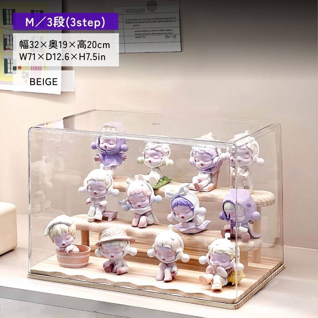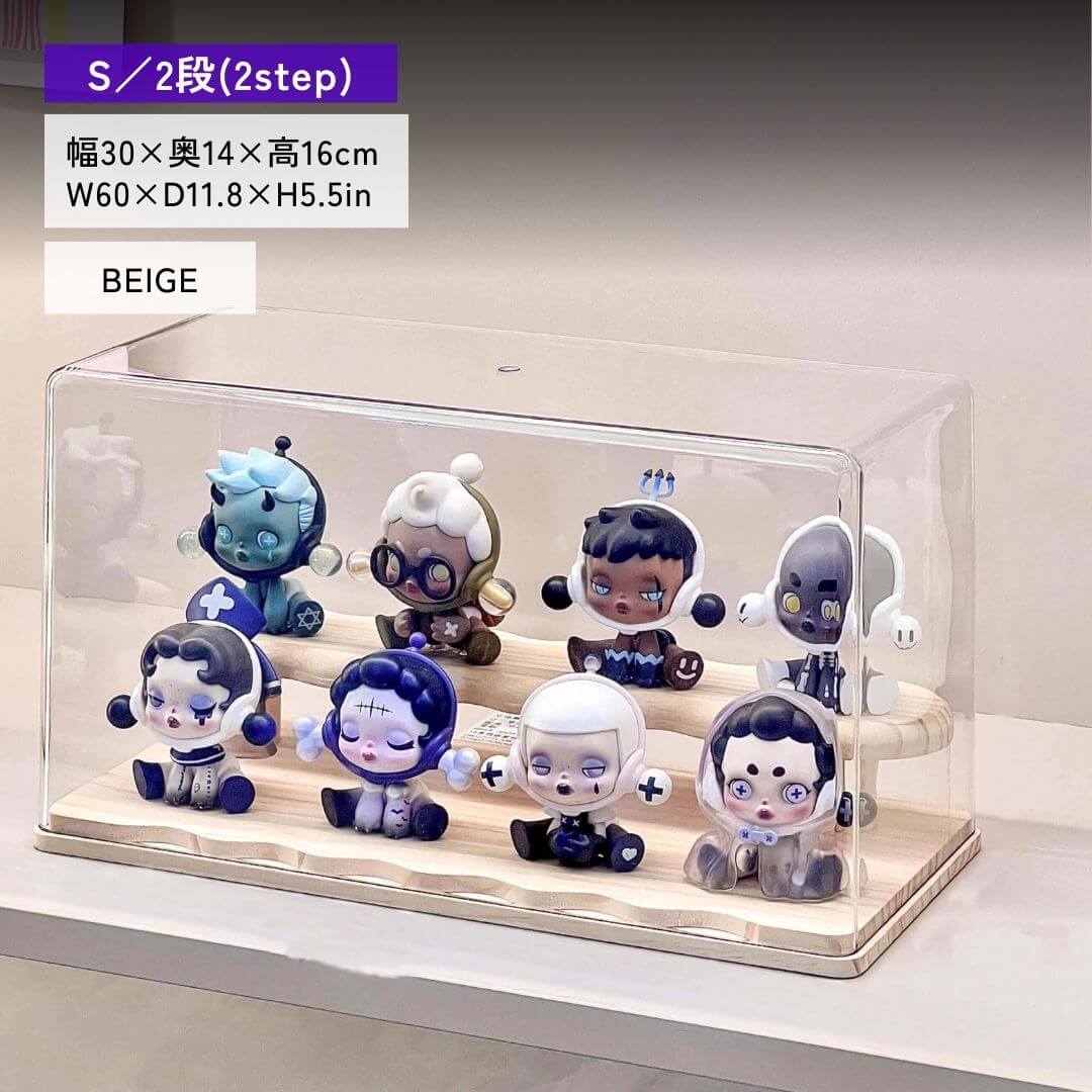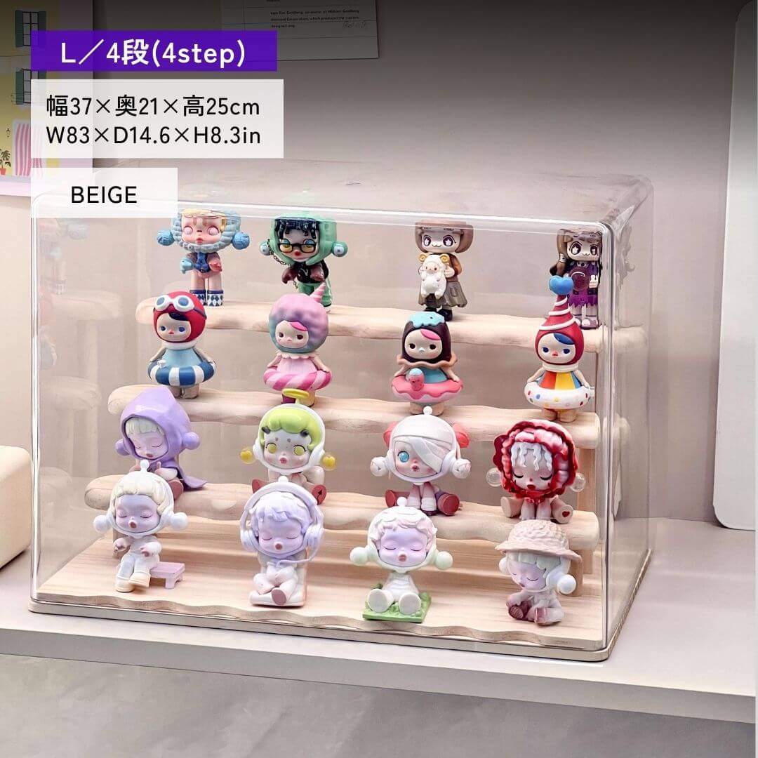 ウッドデザインの台座が可愛いディスプレイケースです。ひな壇の段差数は2段、3段、4段から選択できます。