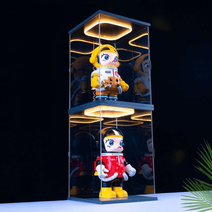 お気に入りのフィギュアやアクリルスタンドをまるでミュージアムのように美しく展示。LED照明が上部から柔らかく照らし、細部まで繊細に演出します。USBケーブルで簡単充電可能、積み重ね対応で実用性も抜群。扉付きでフィギュアの出し入れも簡単です。